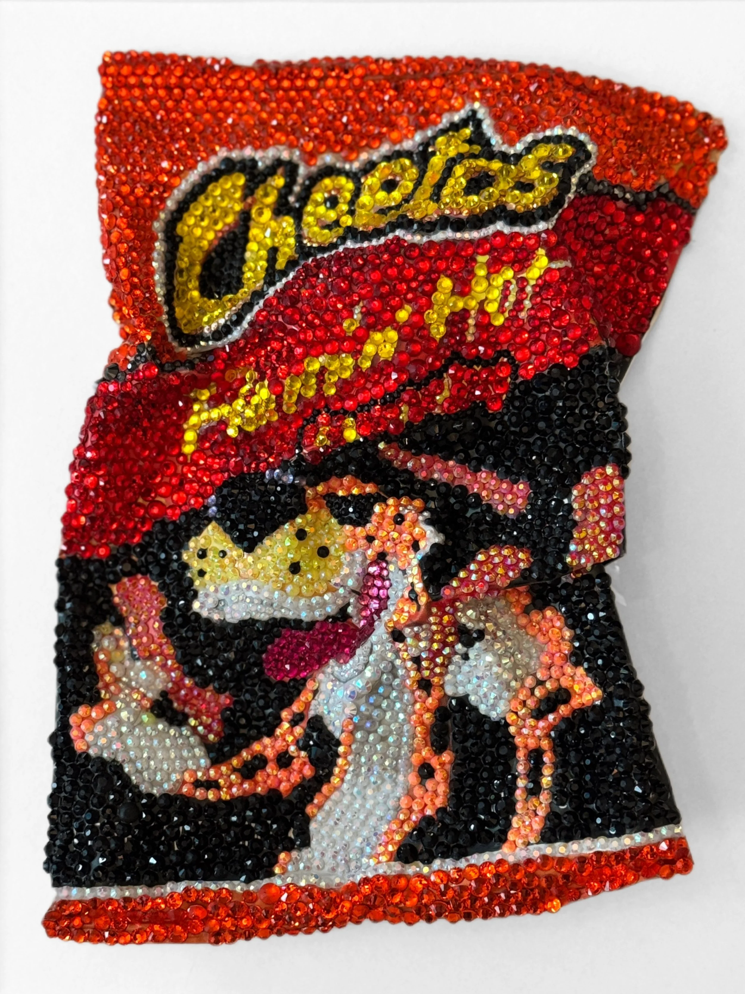 Vita Kari, Trash Altar Cheetos, Found object, rhinestones, mixed media, 2025